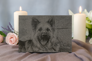 The 5x7 Luxury Granite Pet Portrait was designed for those who want presence without compromise — a tribute that carries both weight and elegance. Larger than our 6x4, it offers more space for detail, giving your pet’s expression and spirit the dignity of a centerpiece while retaining the intimacy of a keepsake.