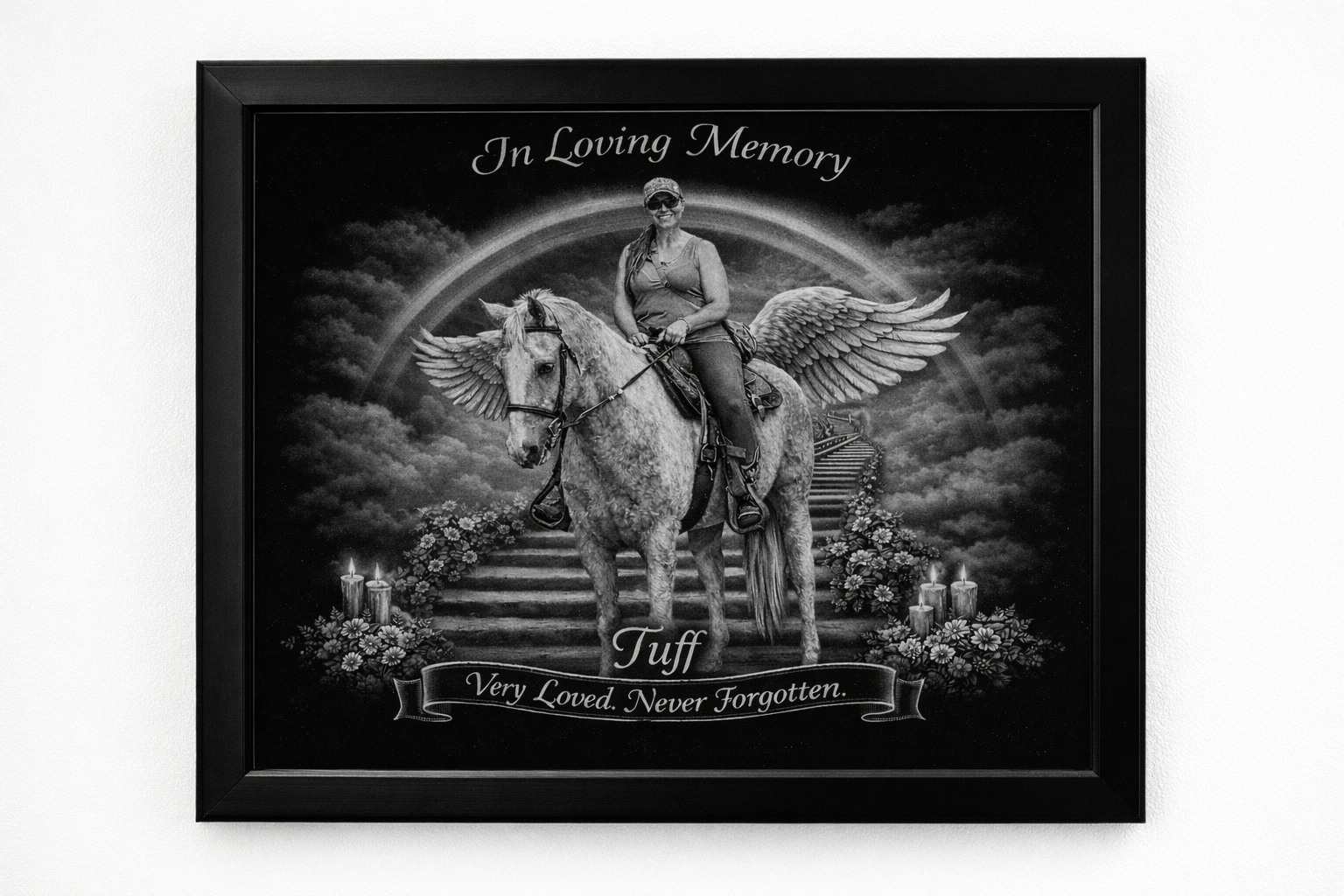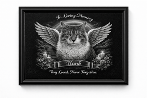 This 8×10 custom memorial comes professionally framed, ready to display as a heartfelt keepsake in your home.