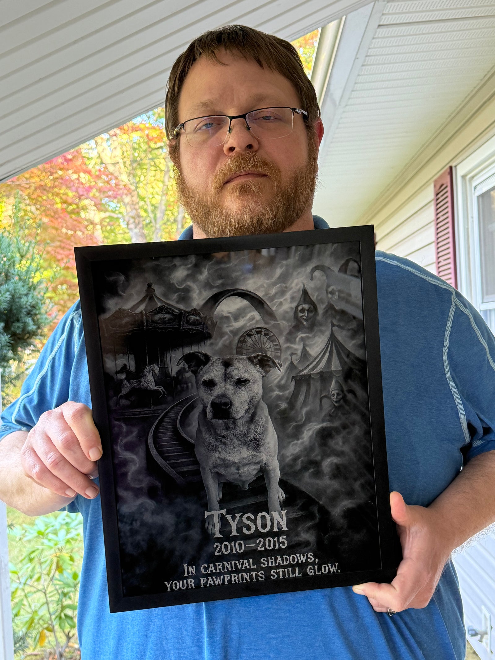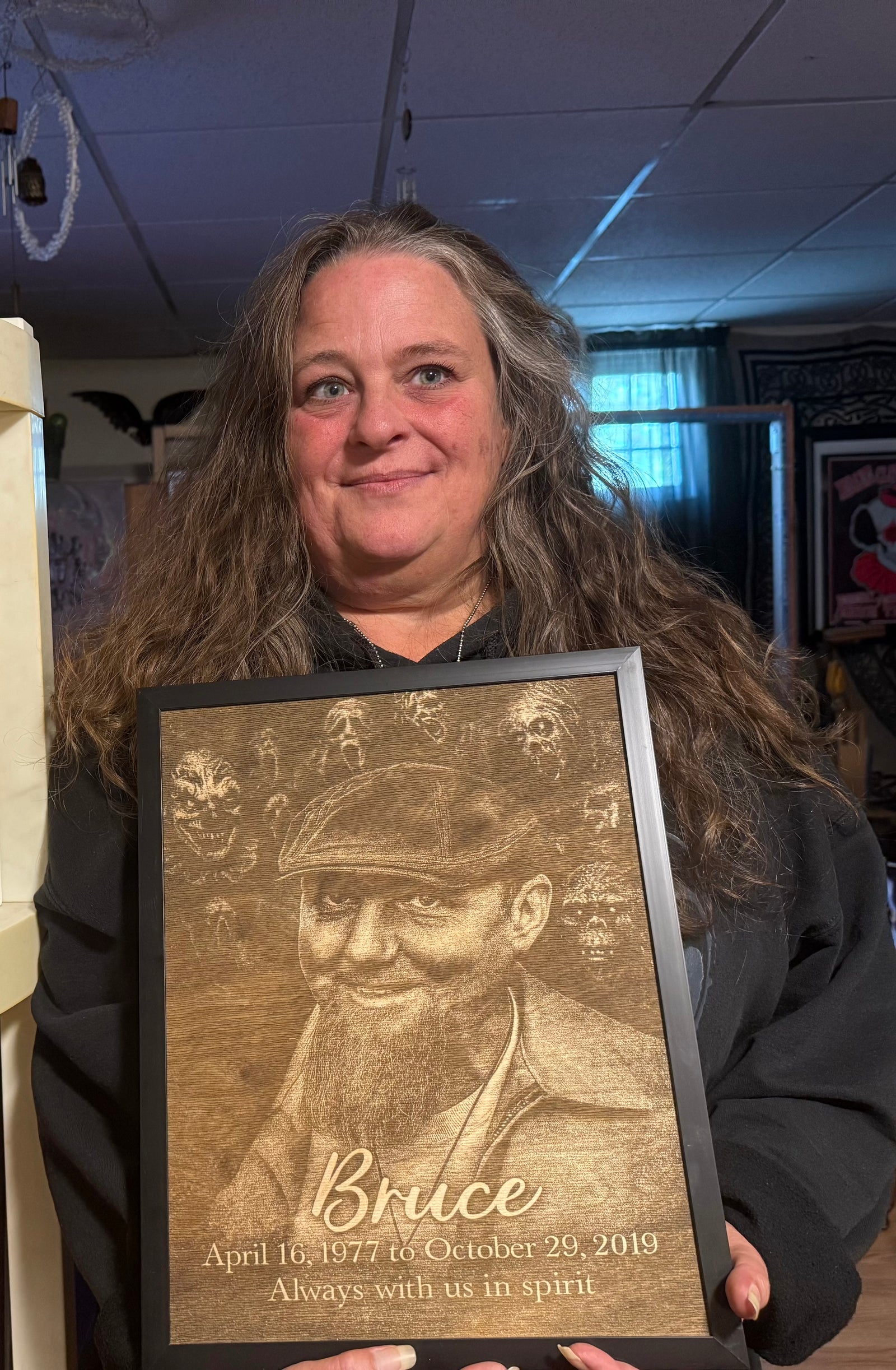 My wife got me this and used my favorite picture and memory of him. After she talked with the owner of Furever Etch, they came up with a beautiful custom design that ties our personalities together that I’ll appreciate and love for ever. The customer service and fast free shipping was a nice bonus.